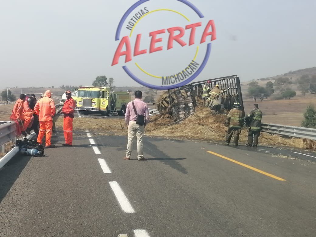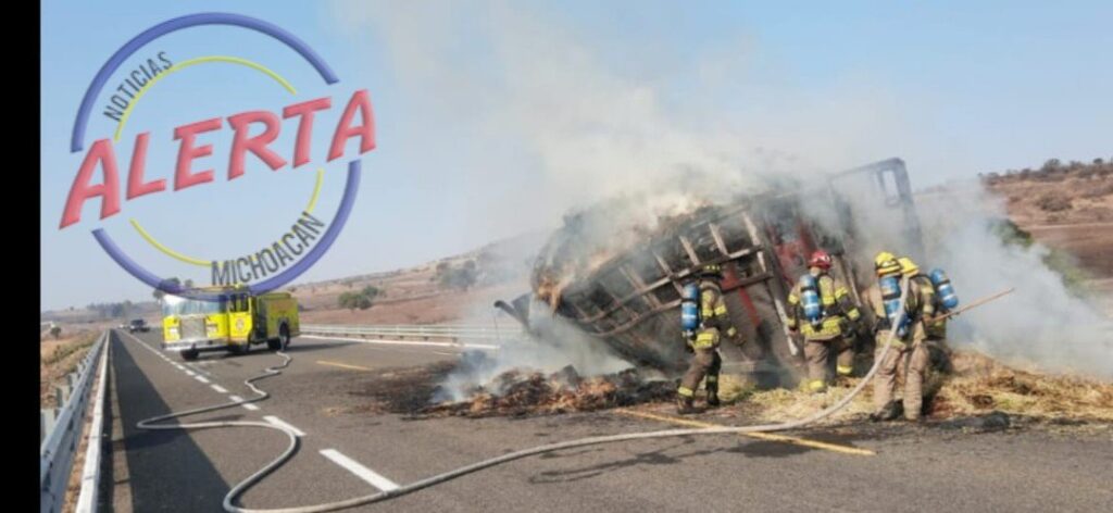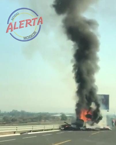 ÁLVARO OBREGON MICH., 5 de mayo.- Un camión de carga quedó reducido a cenizas la mañana de este miércoles al incendiarse cuando circulaba sobre la Autopista Morelia – Aeropuerto.