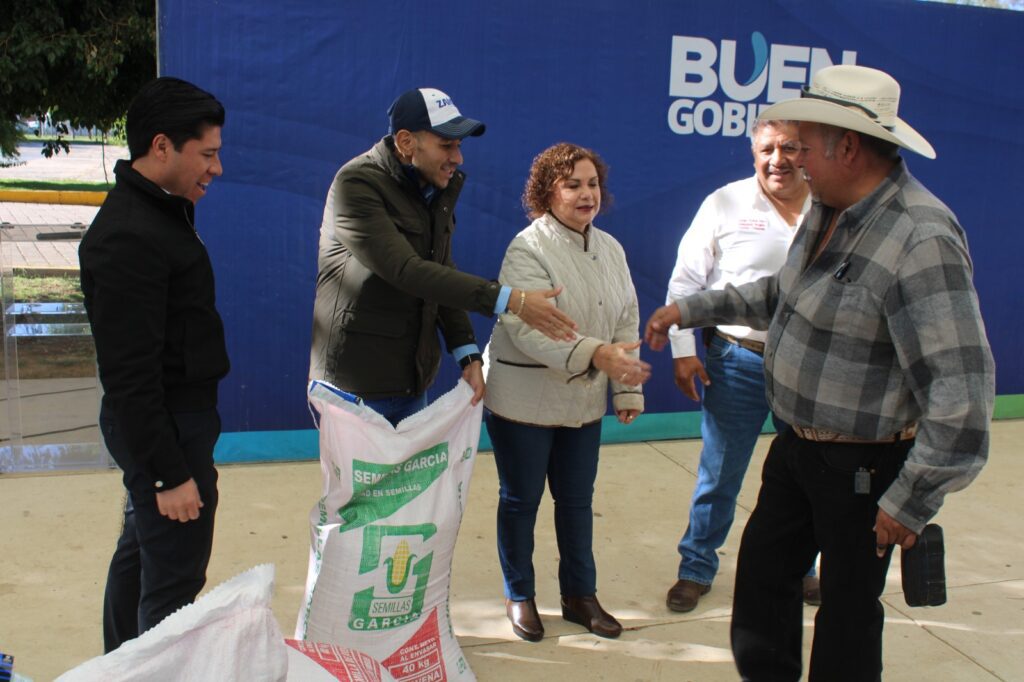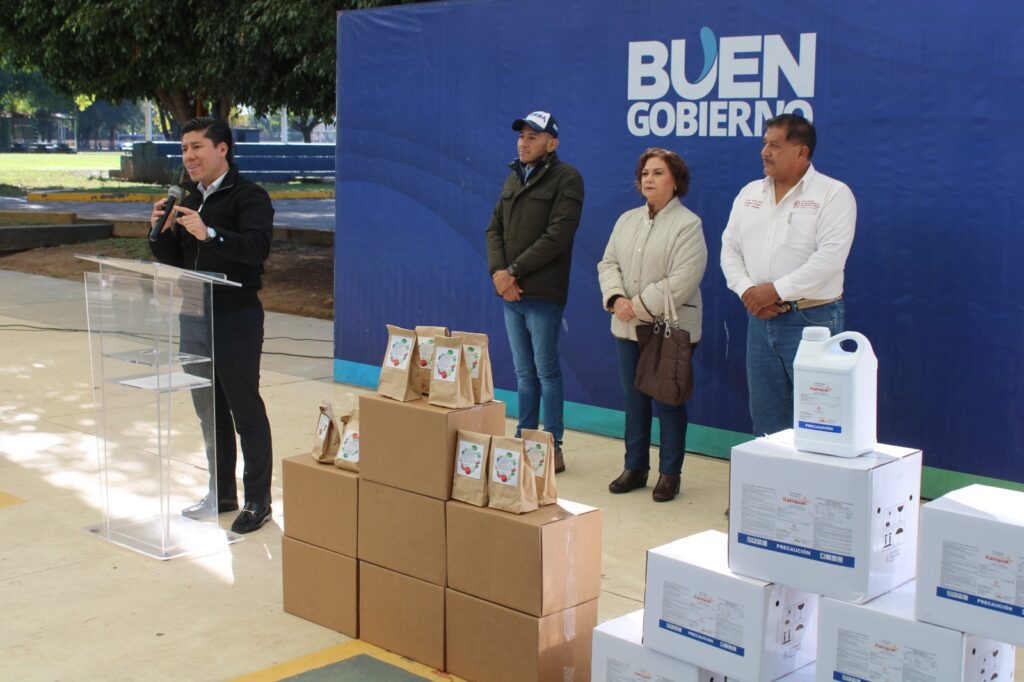 Francisco Javier Licea Hernández, director de Desarrollo Rural y Fomento Industrial, comentó que se realizó la entrega de 800 gallinas de doble propósito, 240 litros de herbicidas de contacto para fumigaciones en espacios públicos, y 8 toneladas de semillas certificadas de avena y sorgo, destinadas a apoyar a los productores afectados por las sequías recientes, además de la entrega de semillas para la implementación de huertos de traspatio.