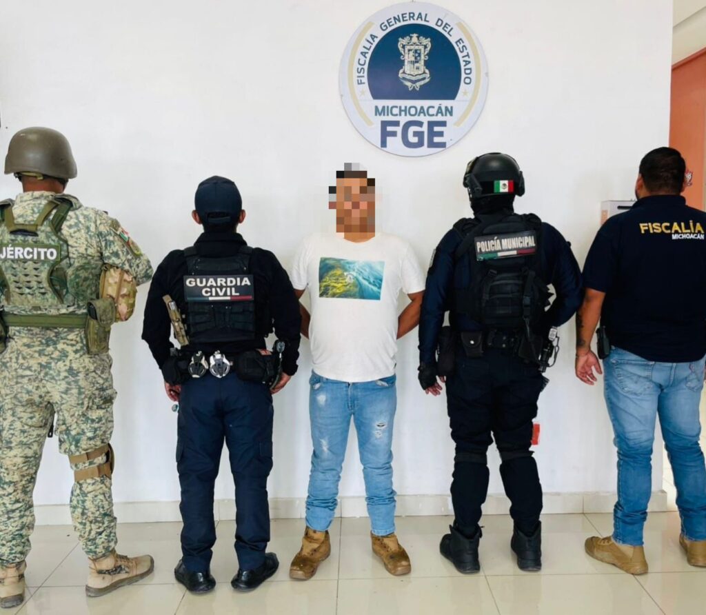 Jacona, Michoacán, 12 de junio de 2025.- Como resultado de los trabajos de prevención y disuasión de ilícitos en el municipio de Jacona, los agentes de las secretarías de Seguridad Pública (SSP) y de la Defensa Nacional (Defensa), junto con la Fiscalía General del Estado (FGE), y la Policía Municipal, detuvieron a un hombre con mandatos judiciales vigentes por los delitos de homicidio y lesiones calificadas.