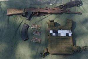Posteriormente, en otra labor operativa en la zona, fue detenido otro hombre originario del estado de Jalisco, quien portaba un fusil, y un chaleco balístico con siglas alusivas a una célula delictiva. Todo lo decomisado y los asegurados fueron presentados ante la autoridad correspondiente para llevar a cabo las indagatorias de ley.