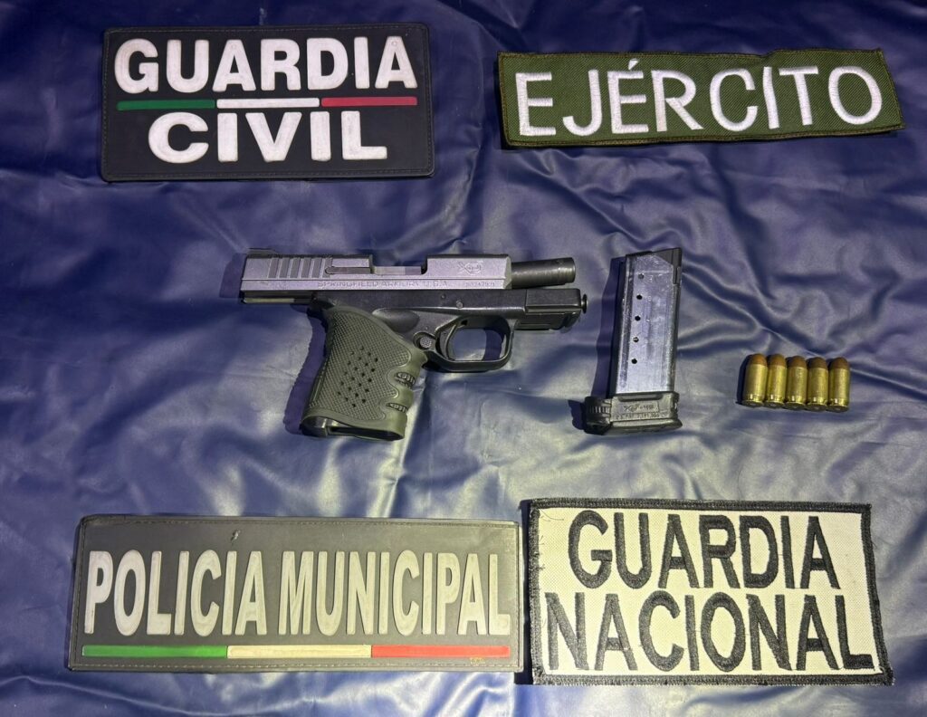En el segundo suceso, en el municipio de Zamora, los efectivos estatales y federales aseguraron a un hombre junto a un arma de fuego calibre .45 milímetros, cinco cartuchos útiles y un cargador, en el fraccionamiento Acanto Residencial.