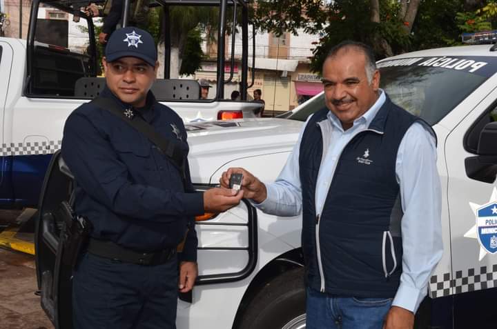 Jacona, Mich; a 23 de noviembre de 2023.- El Alcalde Isidoro Mosqueda Estrada realizó la entrega formal de 5 nuevas patrullas a la Dirección de Seguridad Pública, obtenidas gracias a la operación del programa Fortapaz, con el Gobierno de Michoacán y a la inversión municipal, resultado del buen manejo de los recursos públicos.