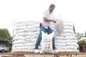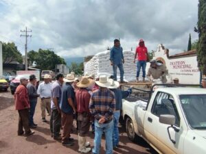 Entrega el Presidente, Isidoro Mosqueda, fertilizante químico (UREA), a 68 productores de menos de 3 hectáreas y ecuareros que serán beneficiados con este programa, el cual se lleva a cabo de forma conjunta con la Secretaría de Agricultura y Desarrollo Rural de Michoacán, (SADER), por medio de la delegación regional.
