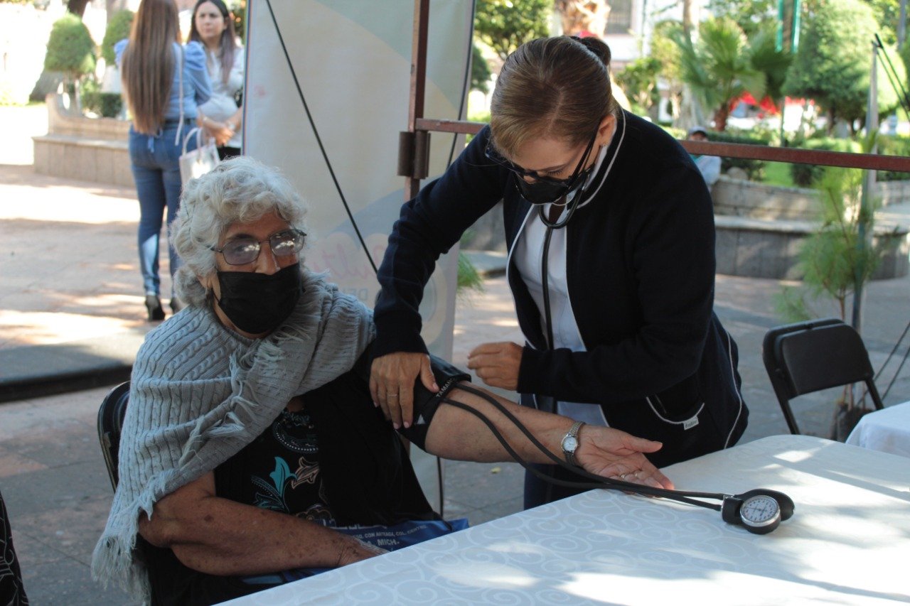 Jacona, Mich; a 24 de Agosto del 2022.- En el marco del “Día Nacional de la persona Adulta Mayor” el Alcalde Isidoro Mosqueda Estrada y autoridades estatales y municipales, presentaron el programa “Salud en tu Familia”, además de inaugurar en la Plaza Principal de Jacona la Feria de Salud de Geriatría orientada principalmente para ciudadanos de la tercera edad.