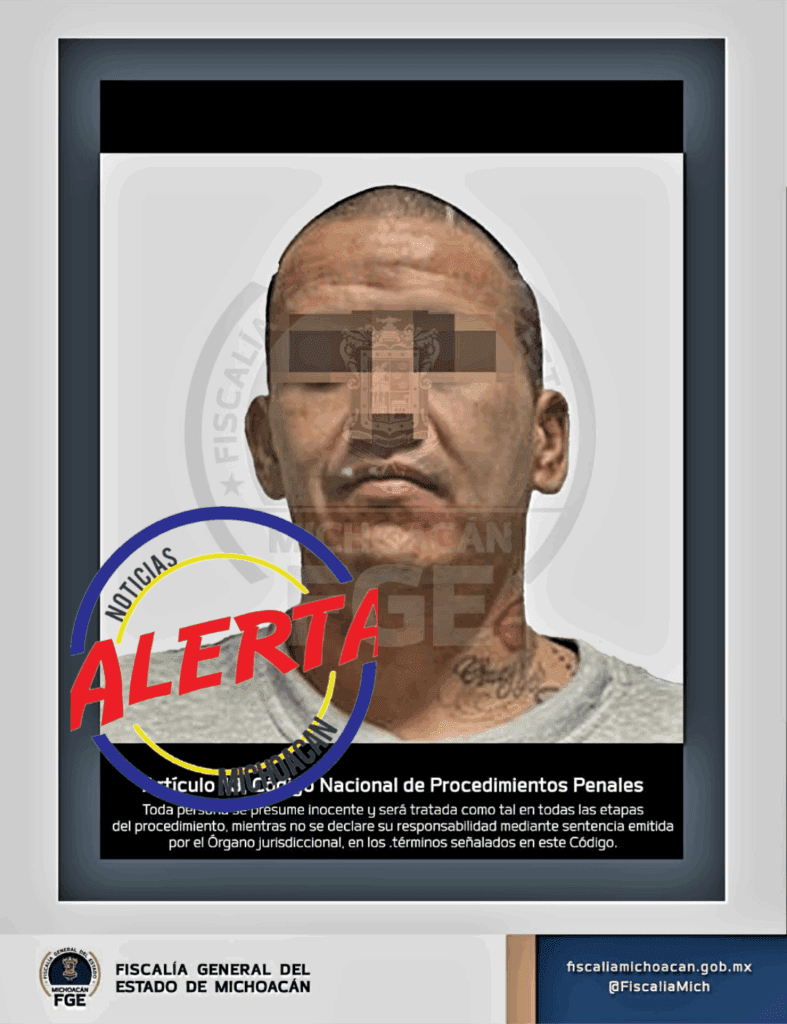 Zamora, Michoacán, a 29 de octubre de 2025.- La Fiscalía General del Estado de Michoacán (FGE) cumplimentó orden de aprehensión en contra de Gerardo Emilio “N”, por su posible relación en el delito de homicidio calificado, cometido en agravio de un jornalero.