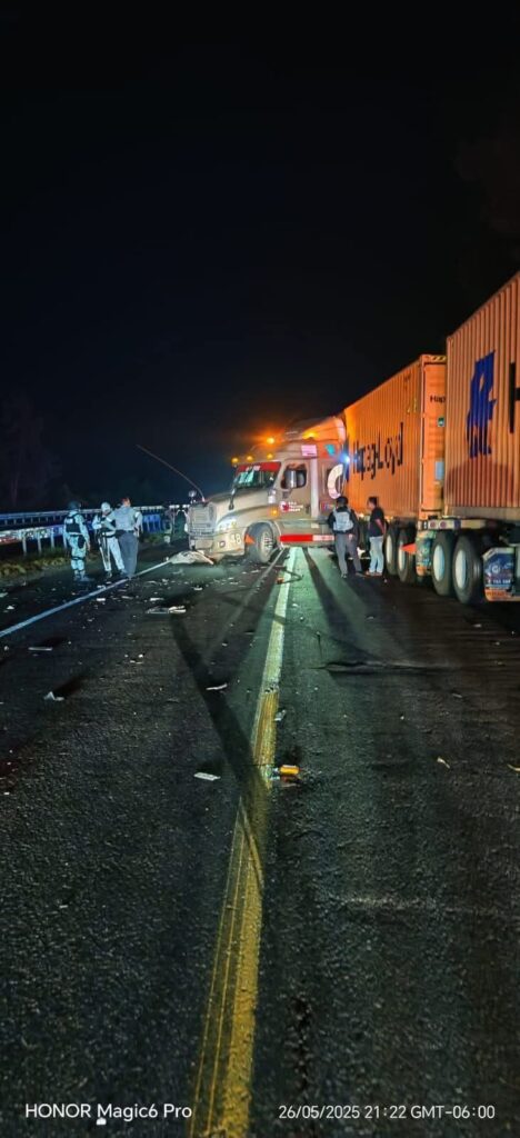 URUAPAN MICH., 26 de mayo.- Un elemento de la Guardia Nacional murió y otro resultó lesionado la noche de este lunes, en un accidente automovilístico registrado en la autopista Siglo XXI.