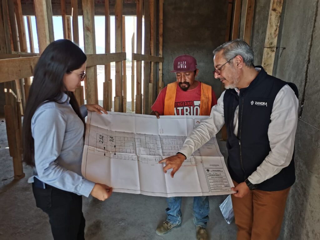 Zamora, Michoacán; a 5 de enero de 2023.- Con la intención de constatar los avances que se tienen en la primera etapa del proyecto y además verificar que se cumpla con las especificaciones de calidad estipuladas fue realizada una verificación a la obra de construcción del Centro de Justicia Integral para Mujeres, región Zamora.